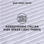 Developed with longer sleeves and wind tunnel tested fabrics to reduce the vortex of air which is generated behind the athlete, ultimately reducing drag and saving watts. - INNOVATIVE COOL STORAGE TECHNOLOGY ON THE RUN